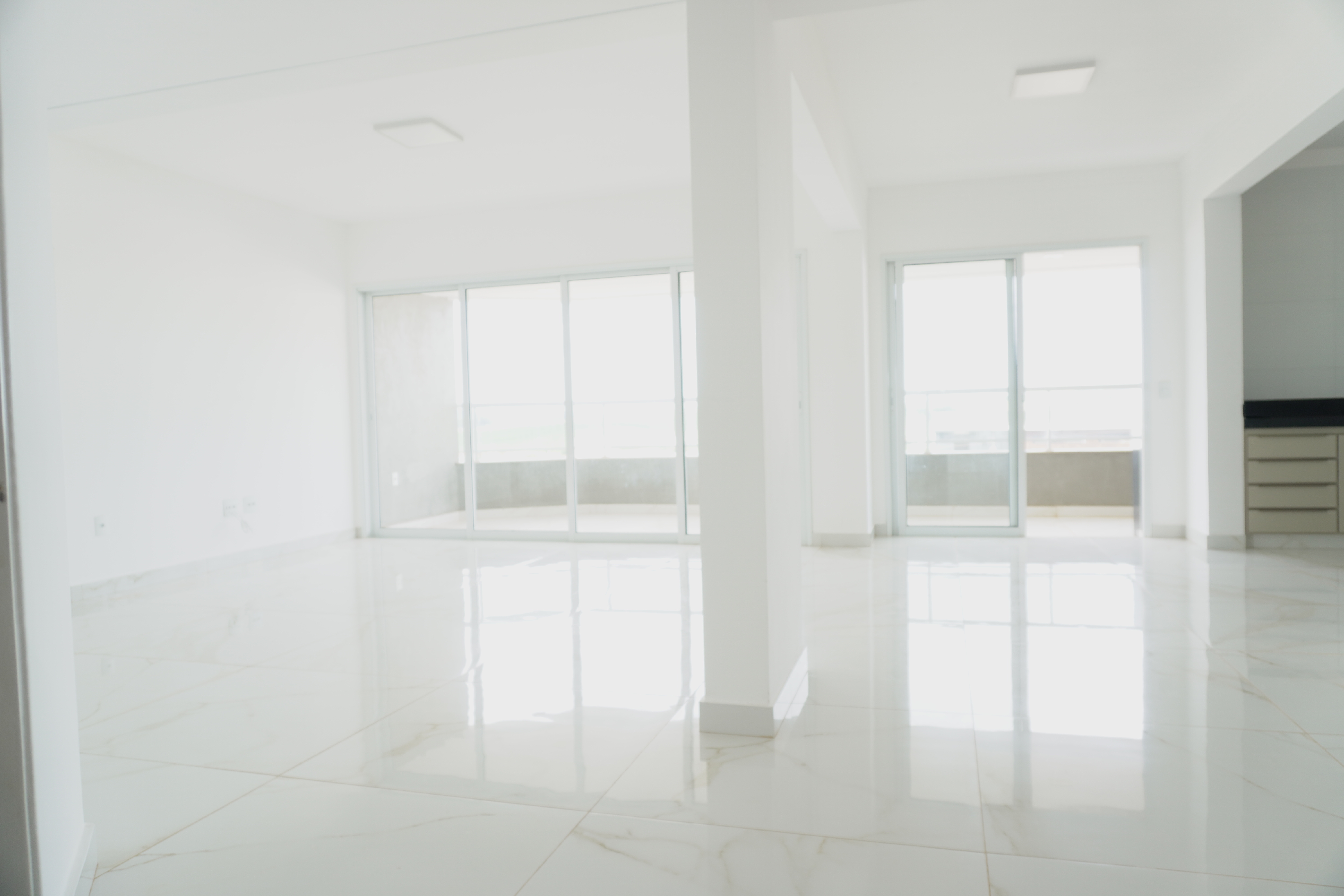 - Piso e revestimentos em porcelanato Portinari Extra, em todos os cômodos;